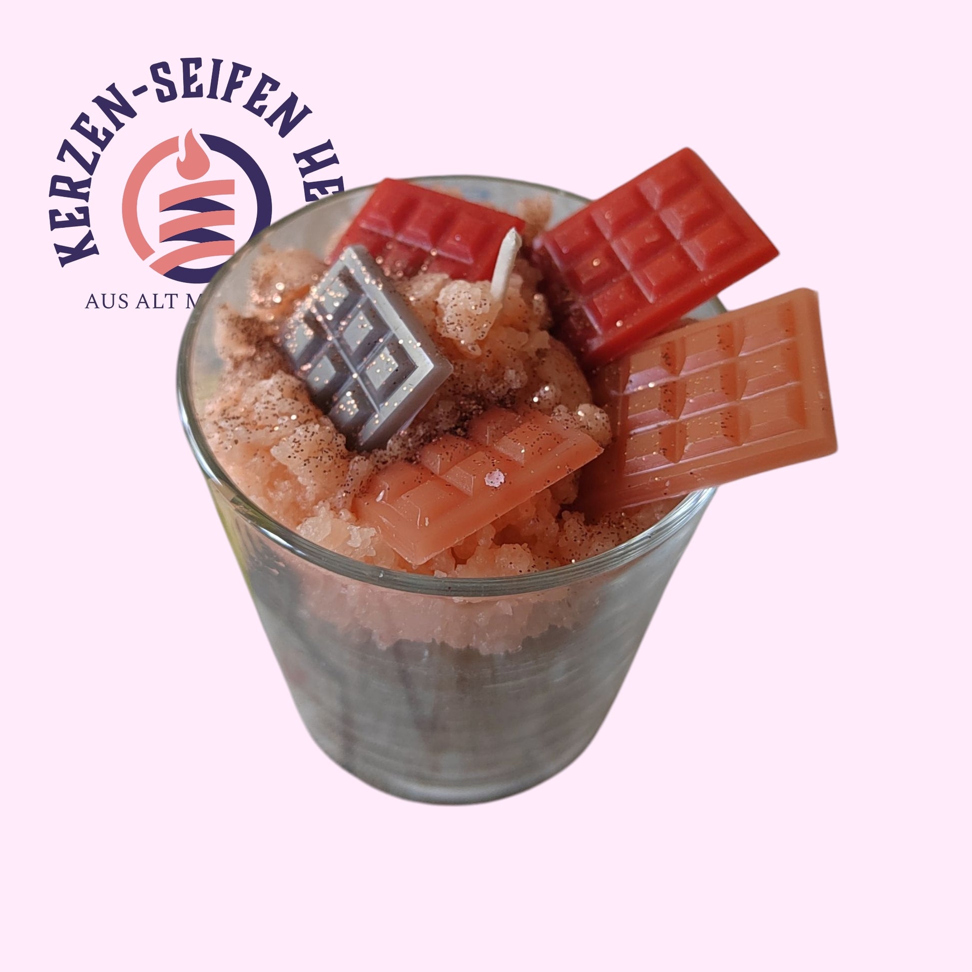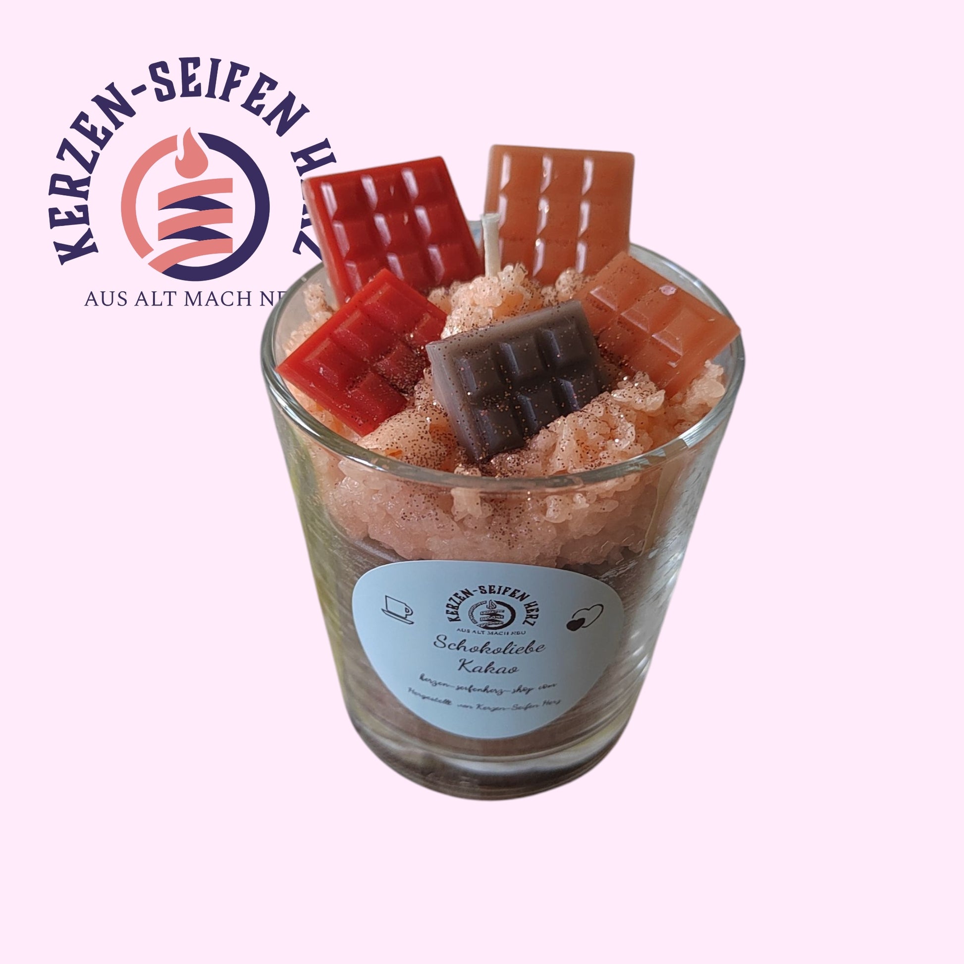 Für alle Schokoladenliebhaber! 🍫 Unsere handgemachte Duftkerze „Schokoliebe“ vereint den warmen, sinnlichen Kakao-Duft mit einem liebevoll gestalteten Design aus kleinen Schokoladentafeln. Jede Kerze wird mit Hingabe von Hand gegossen und verwandelt dein Zuhause in eine süße Wohlfühloase. Perfekt für gemütliche Abende, als Geschenkidee oder als besonderes Deko-Highlight.