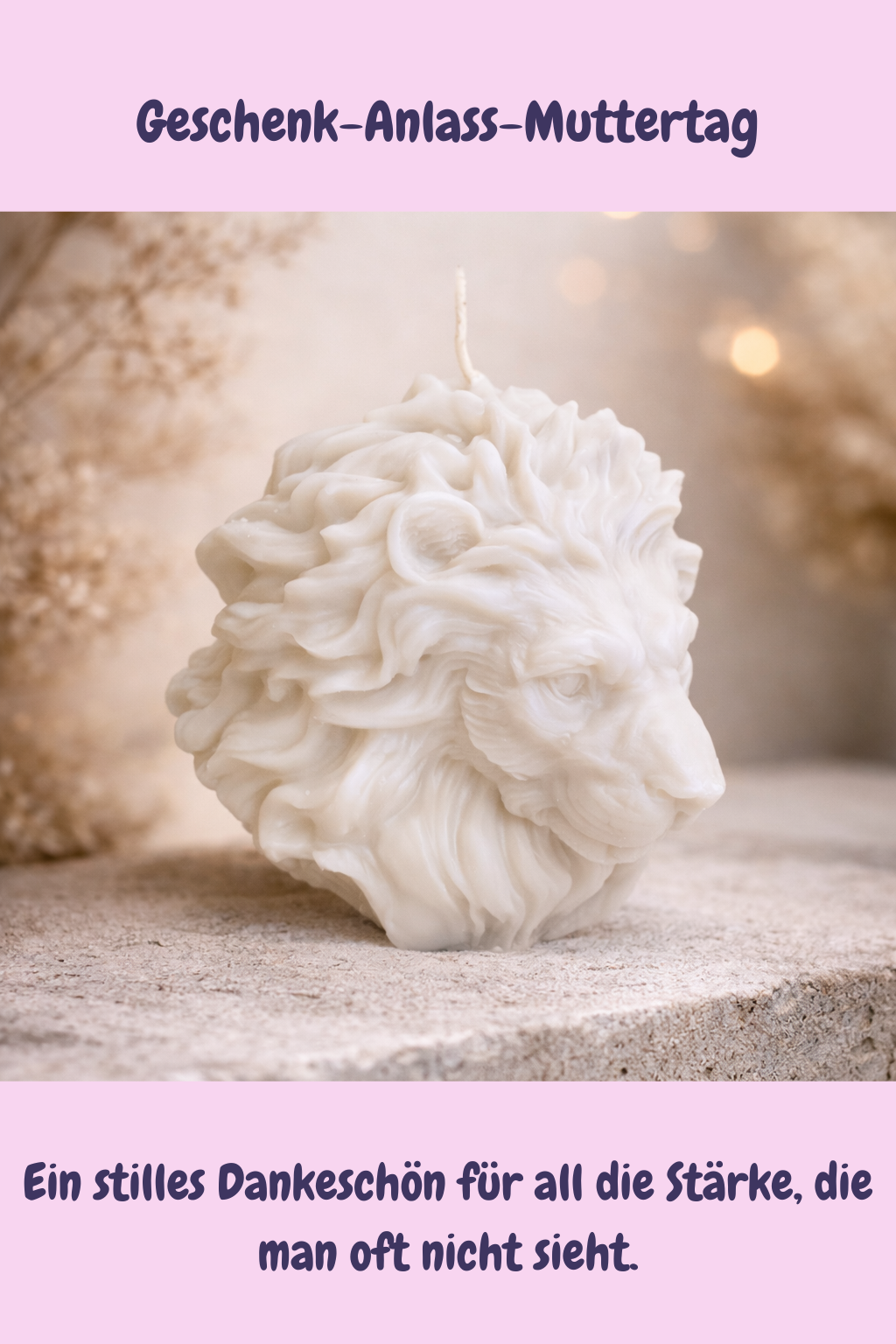 Diese Löwenkopf-Kerze eignet sich als Geschenk zum Muttertag, zum Einzug, als Kraftsymbol oder als bedeutungsvolle Dekoration für besondere Menschen.