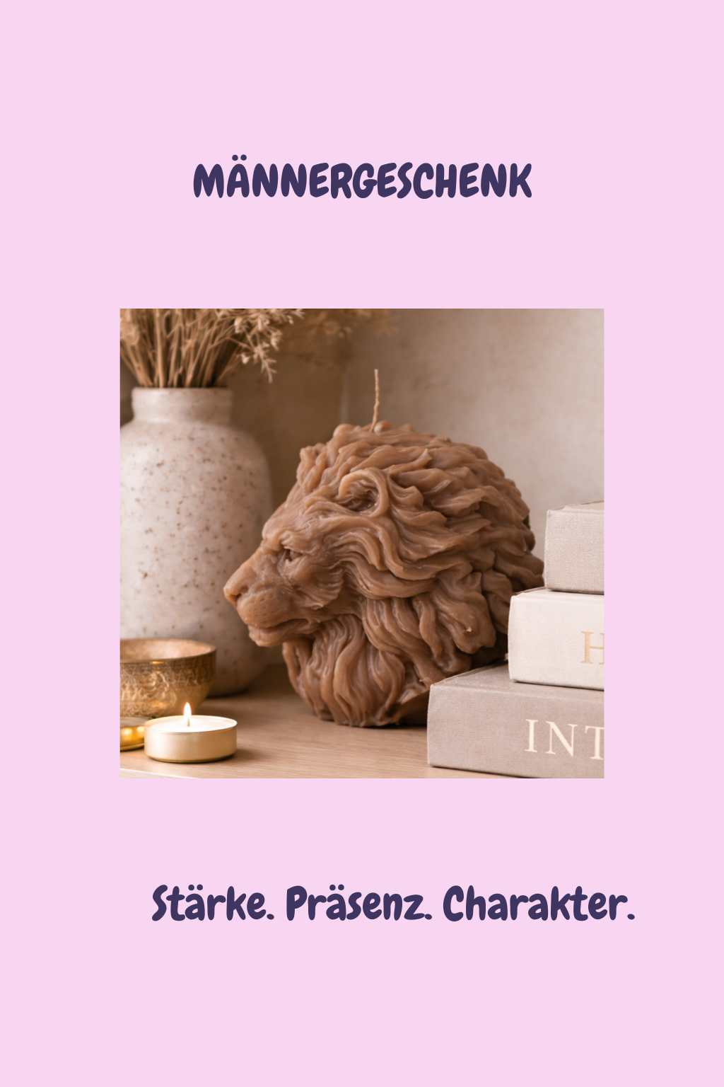 Handgegossene Löwenkopf-Kerze mit ausdrucksstarker Symbolik. Ein leises, kraftvolles Zeichen für Mut, Schutz und innere Stärke – als Geschenk oder stilvolle Dekoration.